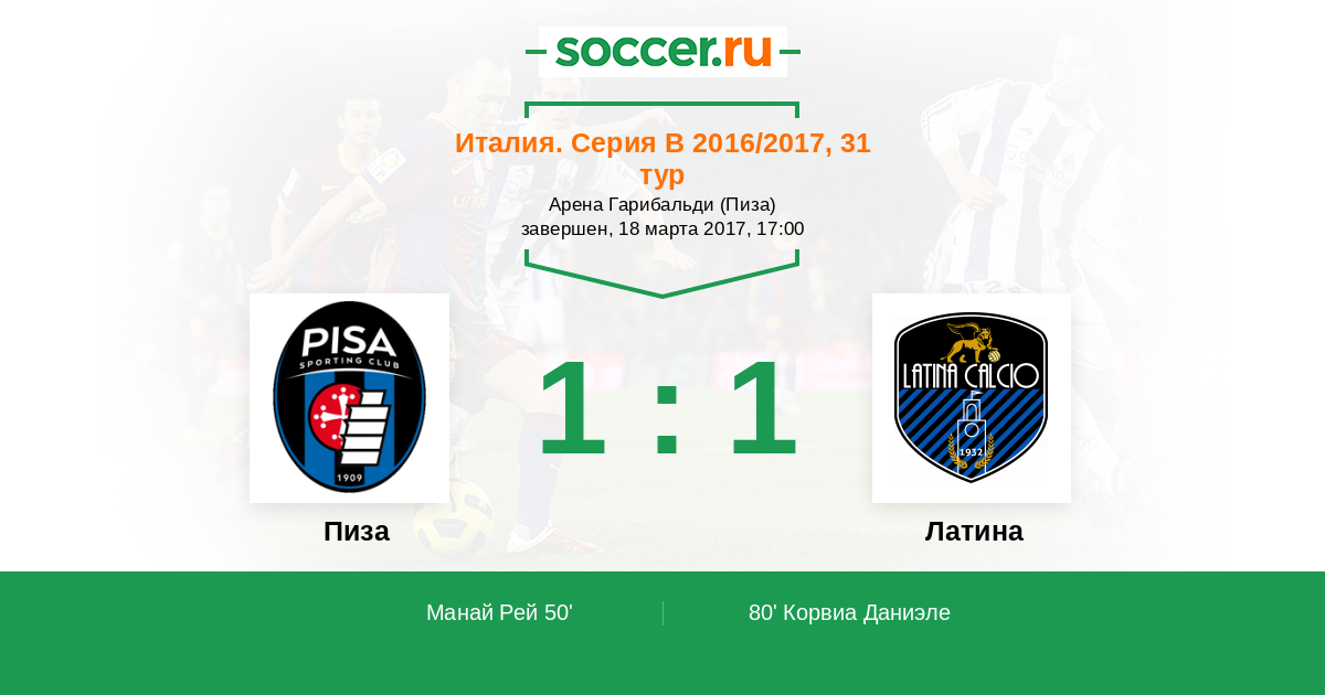 80' (1:1) Корвиа Даниэле (7) (Де Джорджо Пьетро (18))