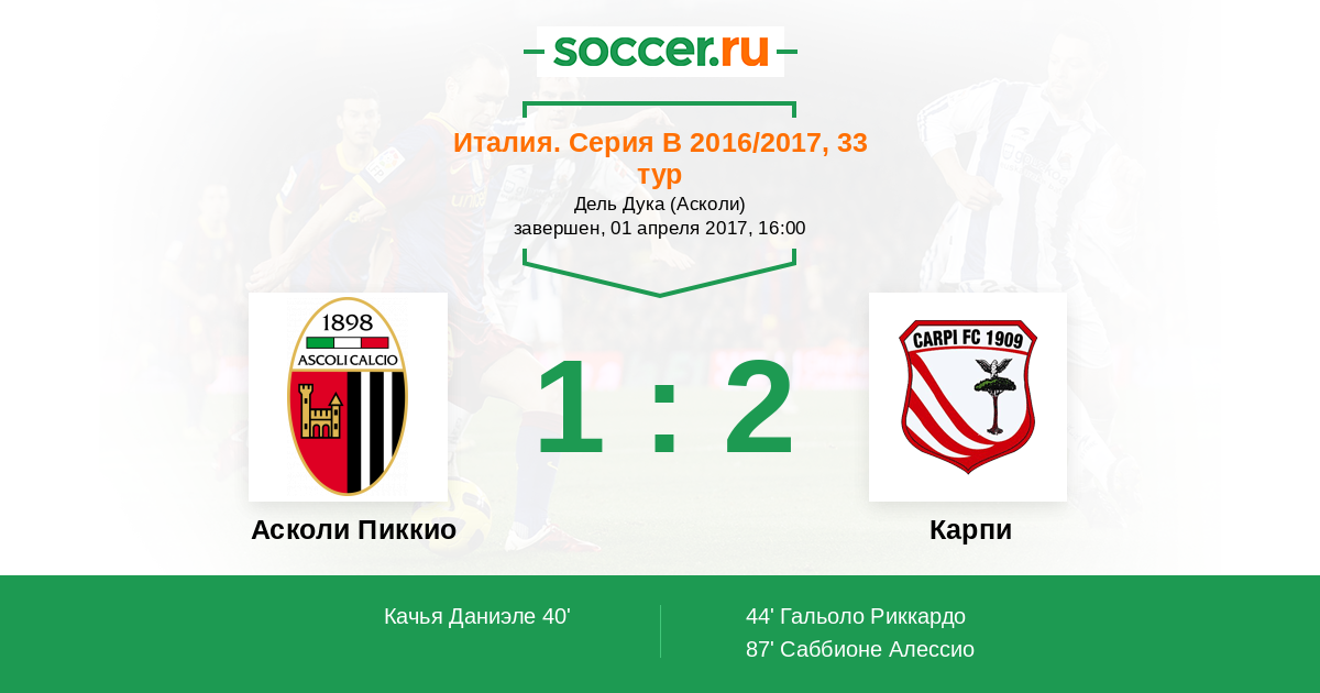 40' (1:0) Качья Даниэле (21) (Фавилли Андреа (30))