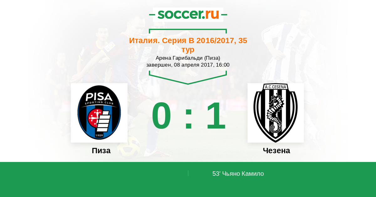 53' (0:1) Чьяно Камило (10) (Панико Джузеппе (17))