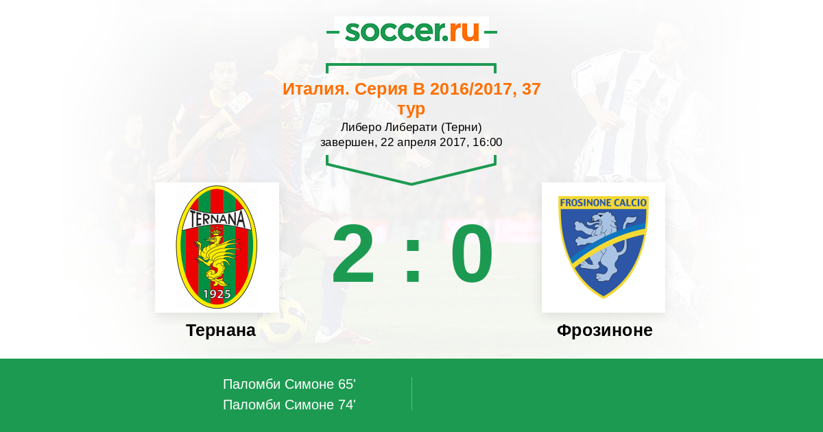 74' (2:0) Паломби Симоне (14) (Петриччоне Якопо (17))