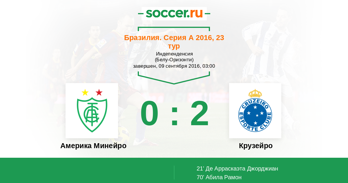 70' (0:2) Абила Рамон (50) (Алиссон (11))
