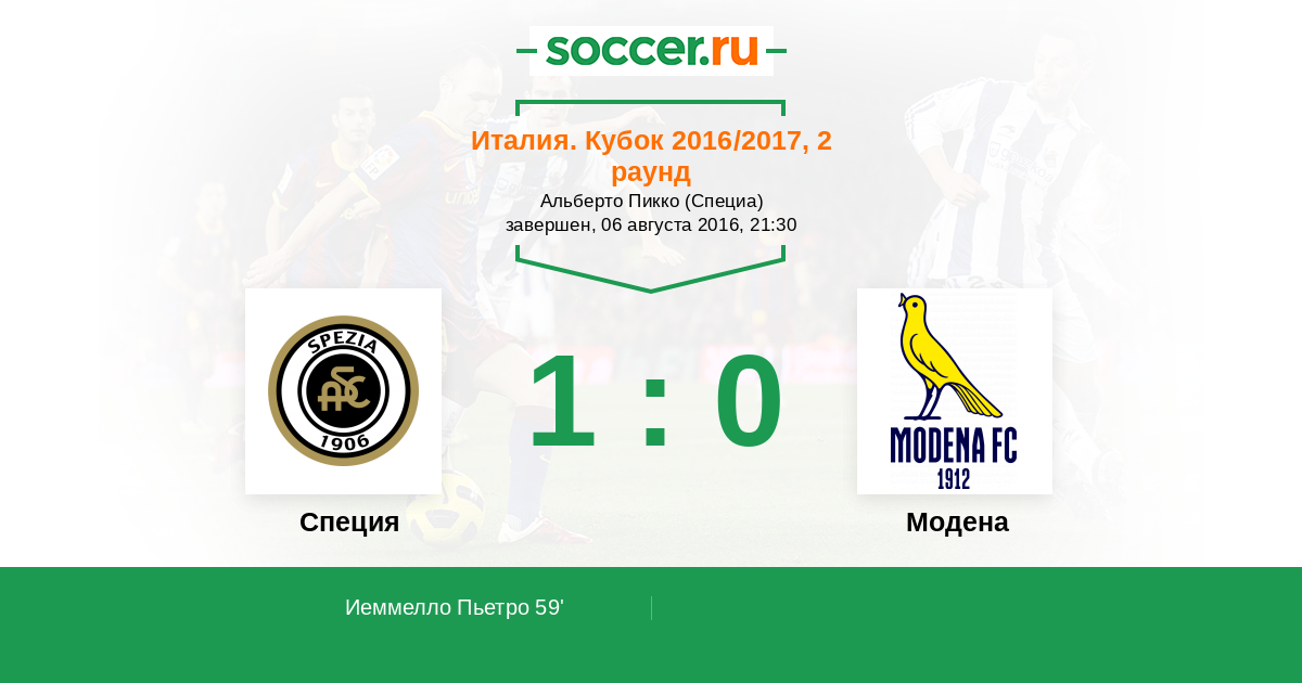 59' (1:0) Иеммелло Пьетро (21)