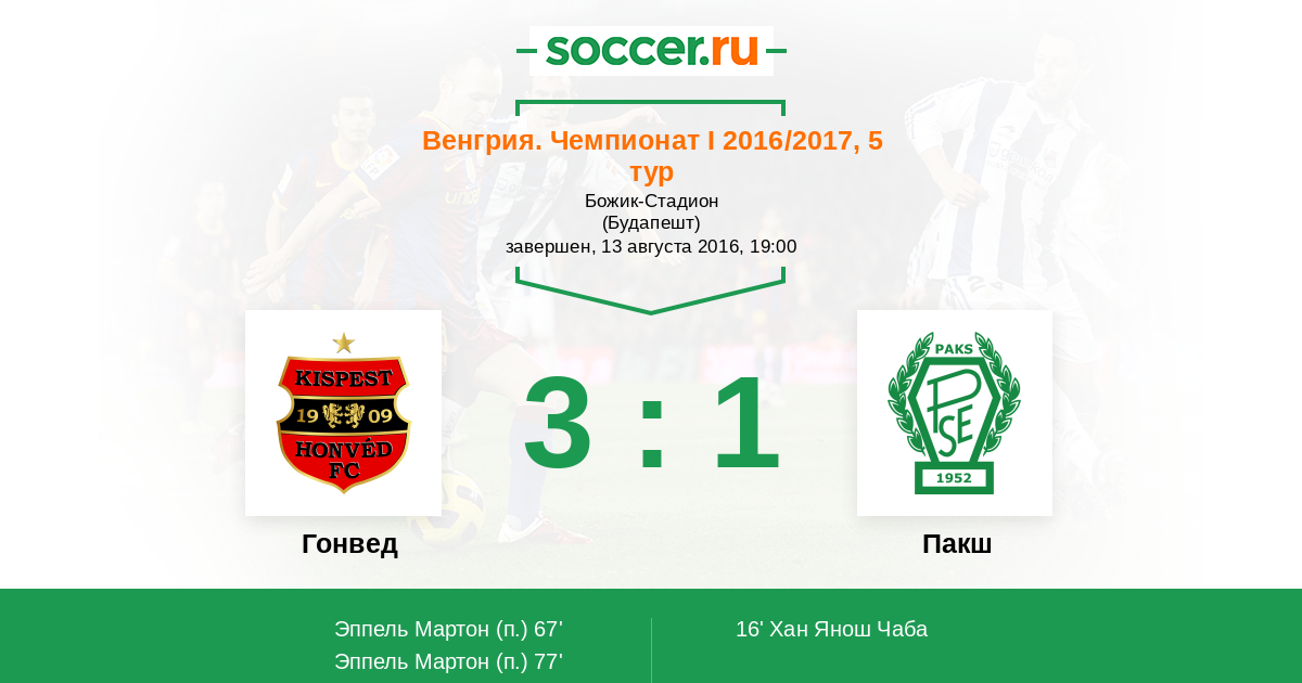 16' (0:1) Хан Янош Чаба (9)