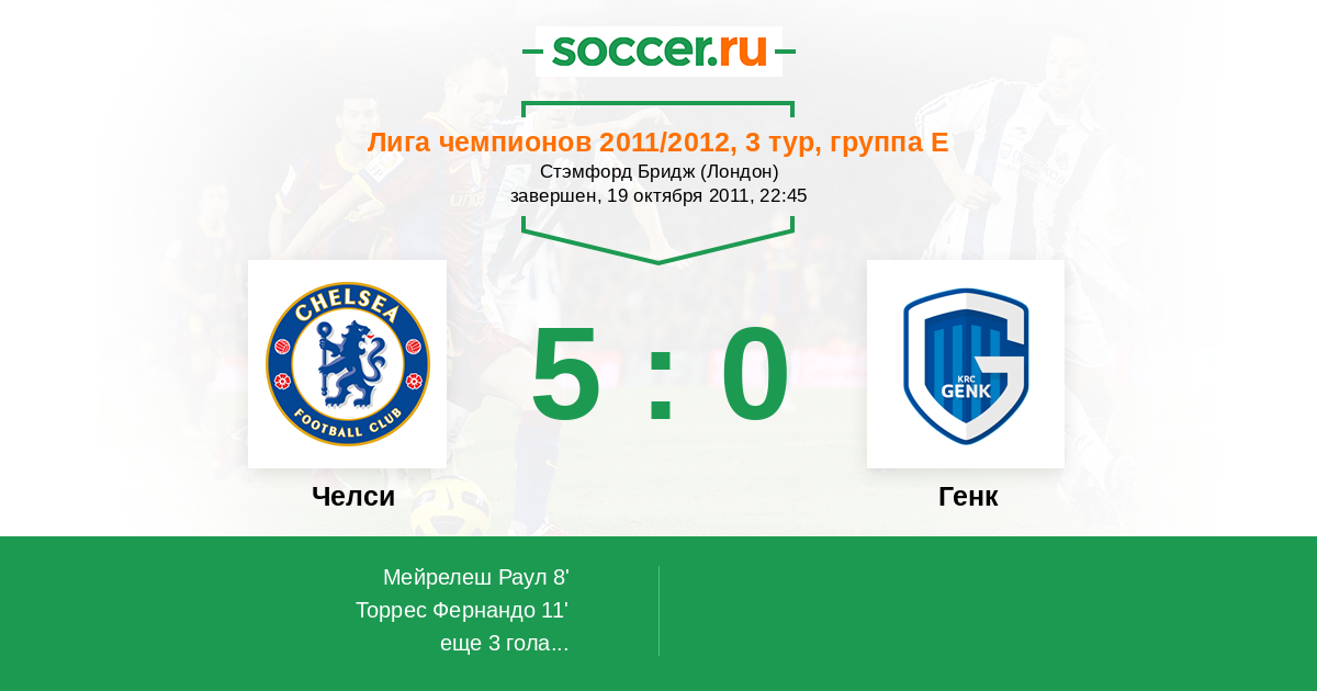 11' (2:0) Торрес Фернандо (9) (Лэмпард Фрэнк (8))
