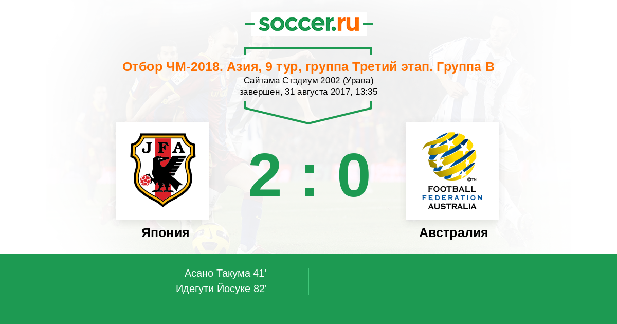 82' (2:0) Идегути Йосуке (2) (Харагути Гэнки (8))