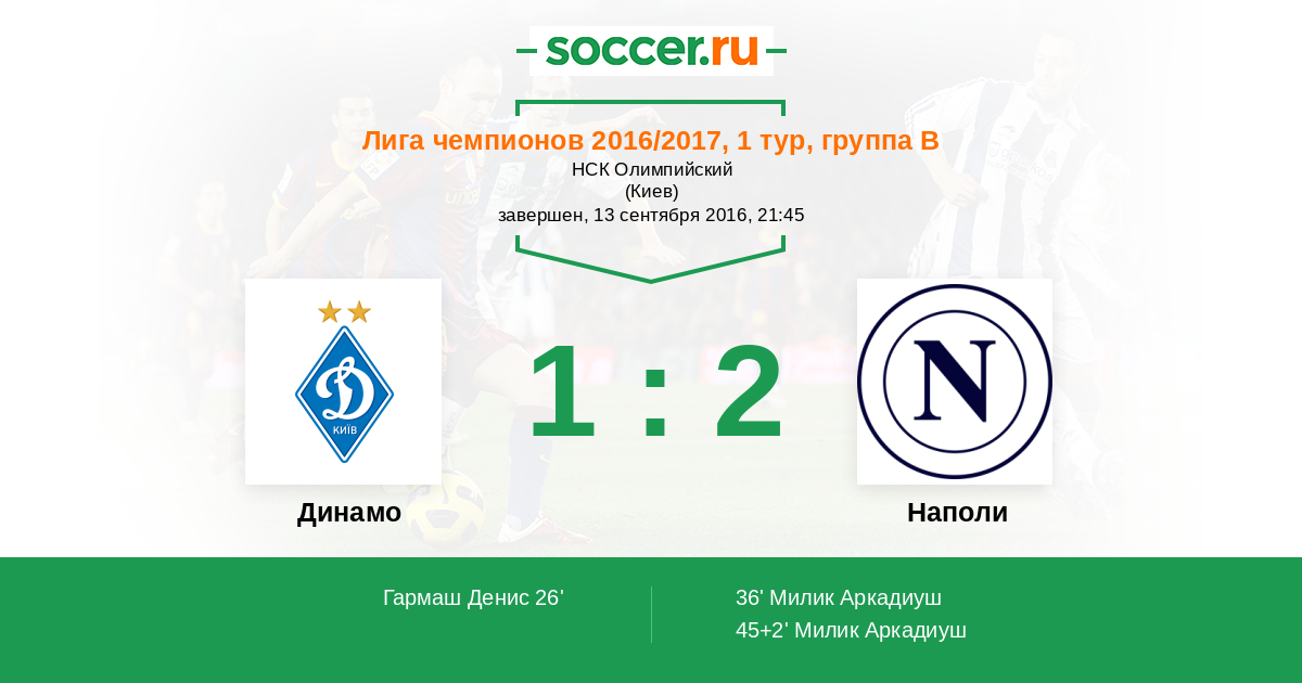 36' (1:1) Милик Аркадиуш (99) (Гулям Фаузи (31))