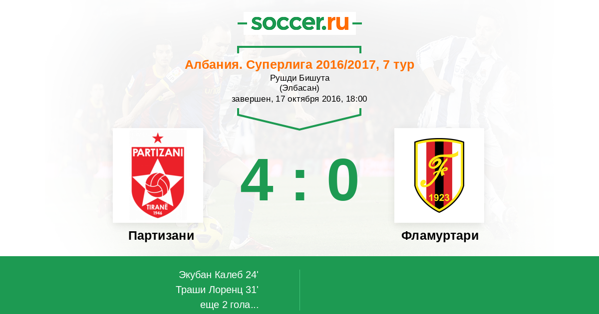 Запасные: Рамадани Илбер (с 61'), Бардхи Юрген (с 69'), Мазрекай Ментор (с 87'), Азубел Бен, Джика Дашамир, Калари Рейнальдо, Малота Ренато