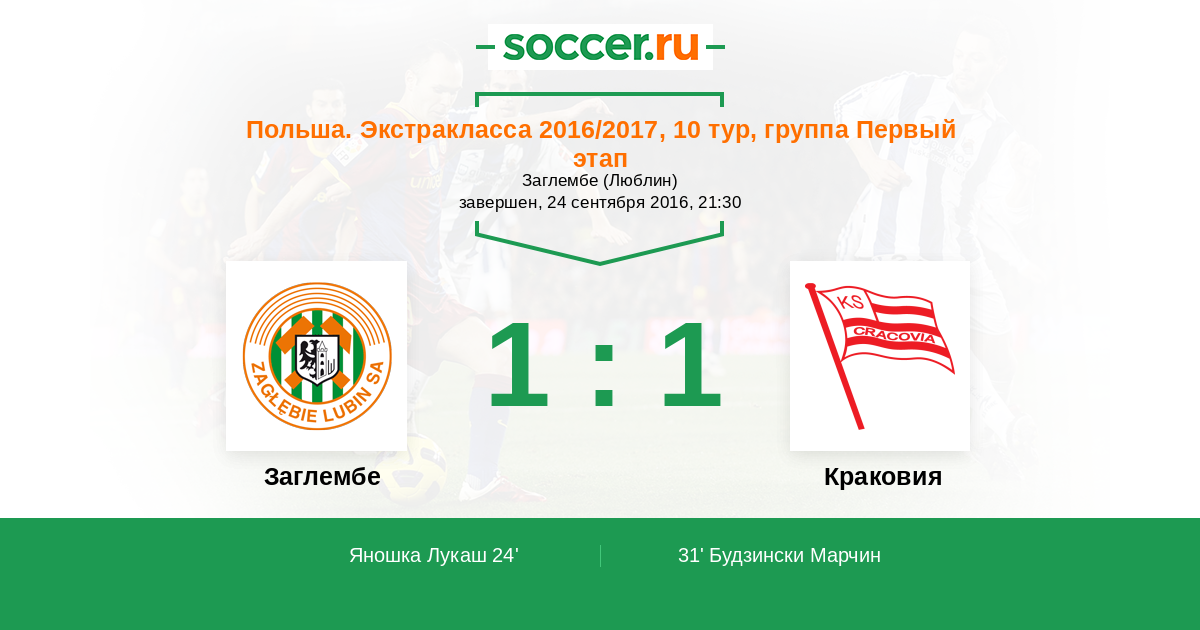 31' (1:1) Будзински Марчин (27)