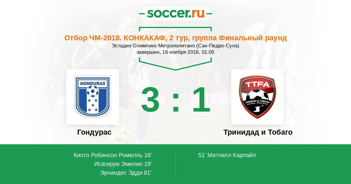 81' (3:1) Эрнандес Эдди (Гарсия Оскар)