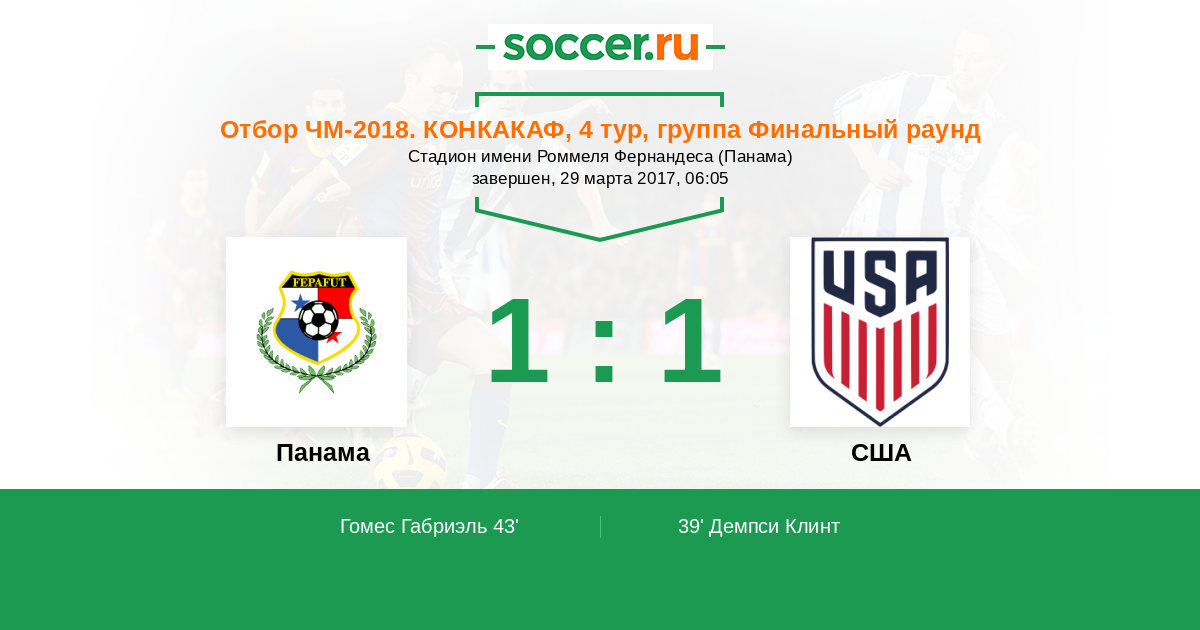 39' (0:1) Демпси Клинт (Пулишич Кристиан)