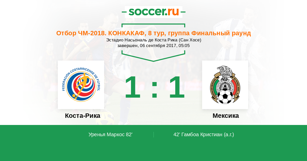 Запасные: Венегас Хоан (с 58'), Уоллес Родни (с 59'), Колиндрес Даниэль (с 75'), Сальватьерра Хосе, Техеда Ельцин, Пембертон Патрик, Гонсалес Джанкарло, Кеннер Гутьеррес, Асофейфа Рэндалл, Уманья Майкл, Морейра Леонель, Ортис Хосе