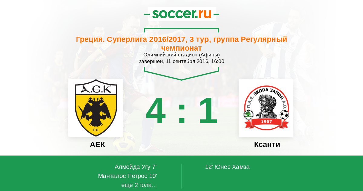 Запасные: 21 Аравидис Христос (с 61'), 8 Симоэш Андре (с 65'), 10 Варгас Рональд (с 75'), 1 Баркас Василиос, 11 Плателас Евангелос, 26 Коловециос Димитриос, 27 Бакакис Михалис