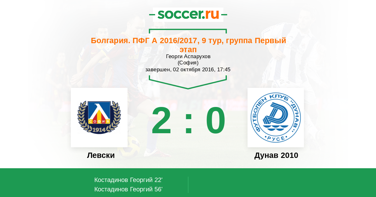 56' (2:0) Костадинов Георгий (70)