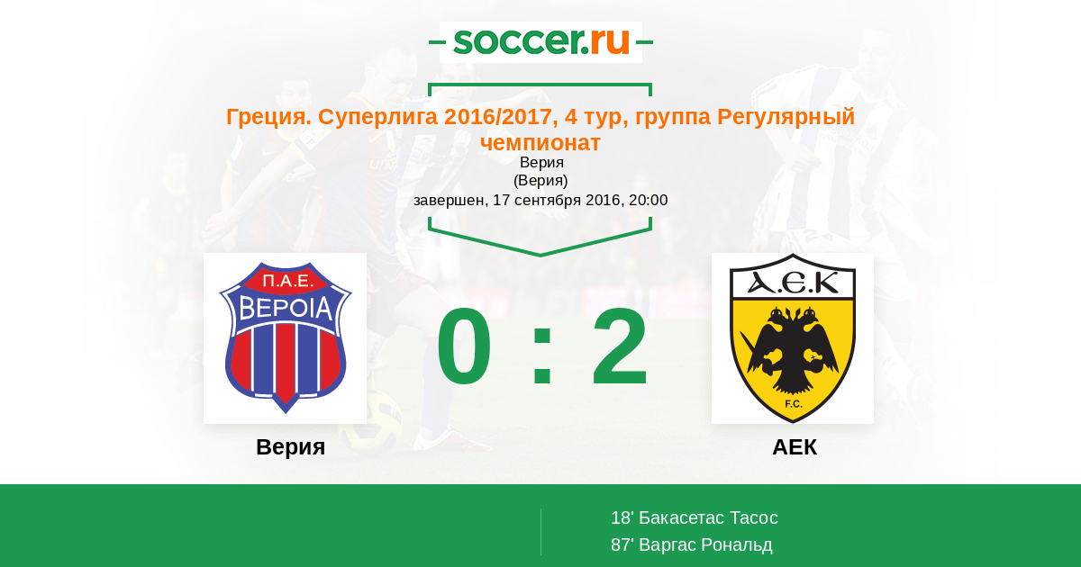 Запасные: 10 Варгас Рональд (с 41'), 11 Плателас Евангелос (с 64'), 5 Ламбропулос Константинос (с 81'), 1 Баркас Василиос, 14 Пекхарт Томаш, 21 Аравидис Христос, 27 Бакакис Михалис