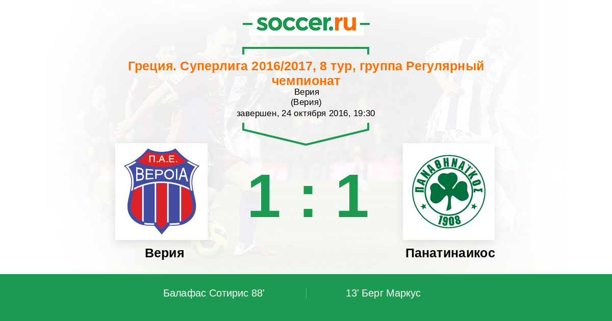 13' (0:1) Берг Маркус (9) (Ибарбо Виктор (8))