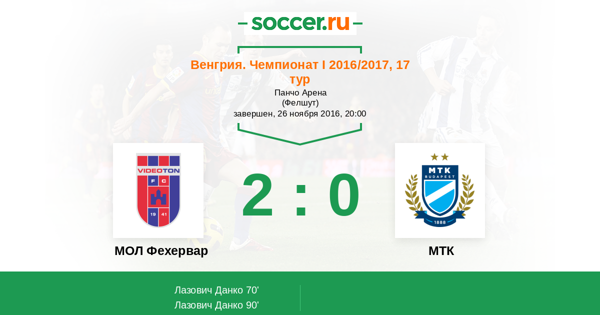 Запасные: 10 Ковач Иштван (с 46'), 27 Боди Адам (с 90+3'), 1 Хорват Тамаш, 8 Полоски Жолт, 31 Барци Давид, 75 Варга Бенце, 14 Беварди Зомбор