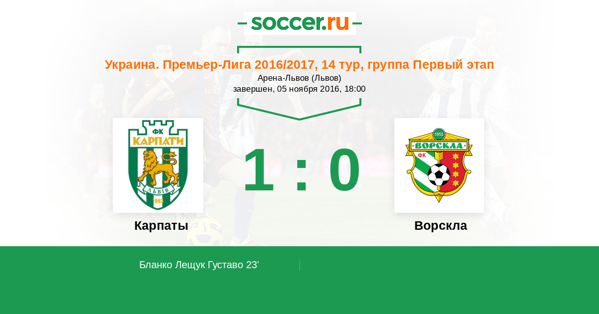 23' (1:0) Бланко Лещук Густаво (9) (Худобяк Игорь (16))