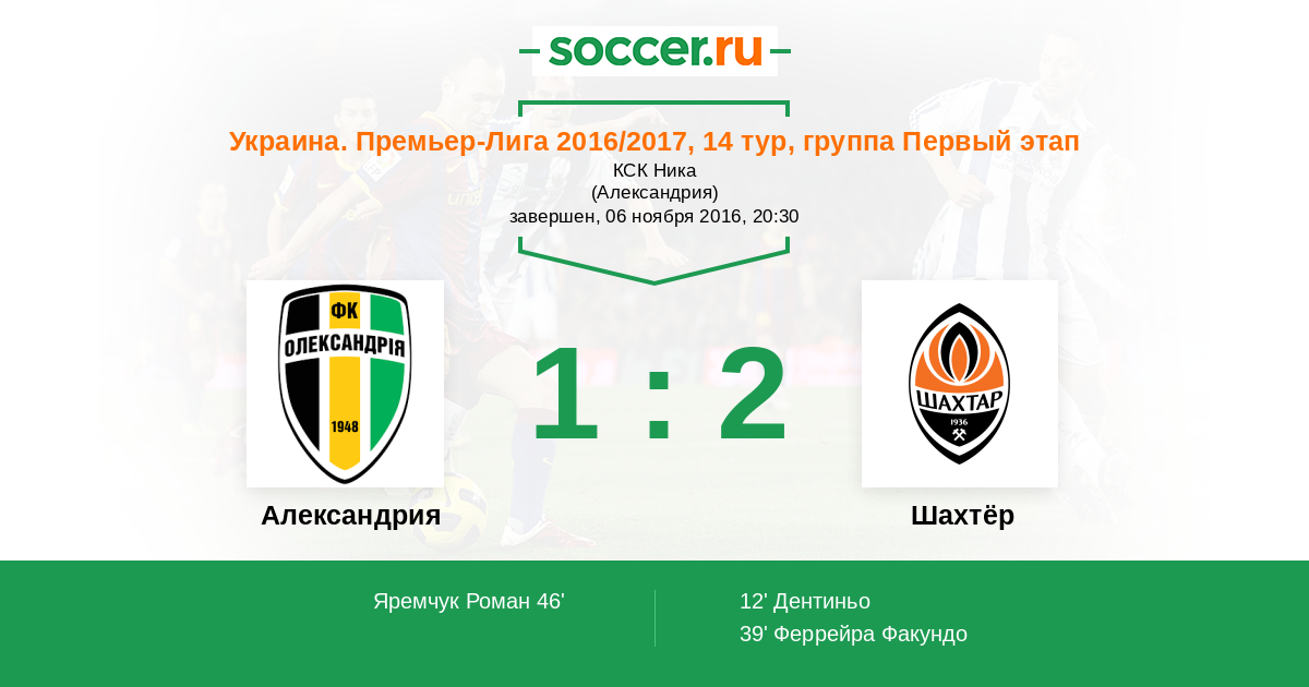 12' (0:1) Дентиньо (9) (Бернард (10))