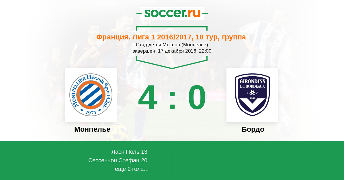 13' (1:0) Ласн Поль (7) (Сансон Морган (8))
