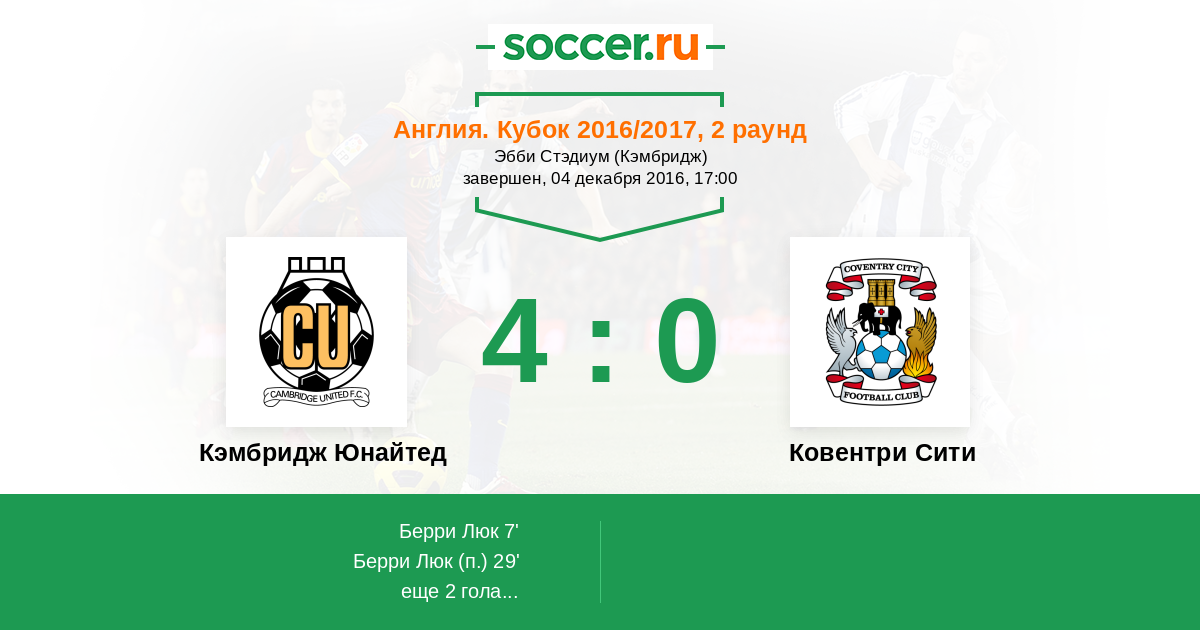 86' (4:0) Берри Люк (8) (Халлидэй Брэд (28))