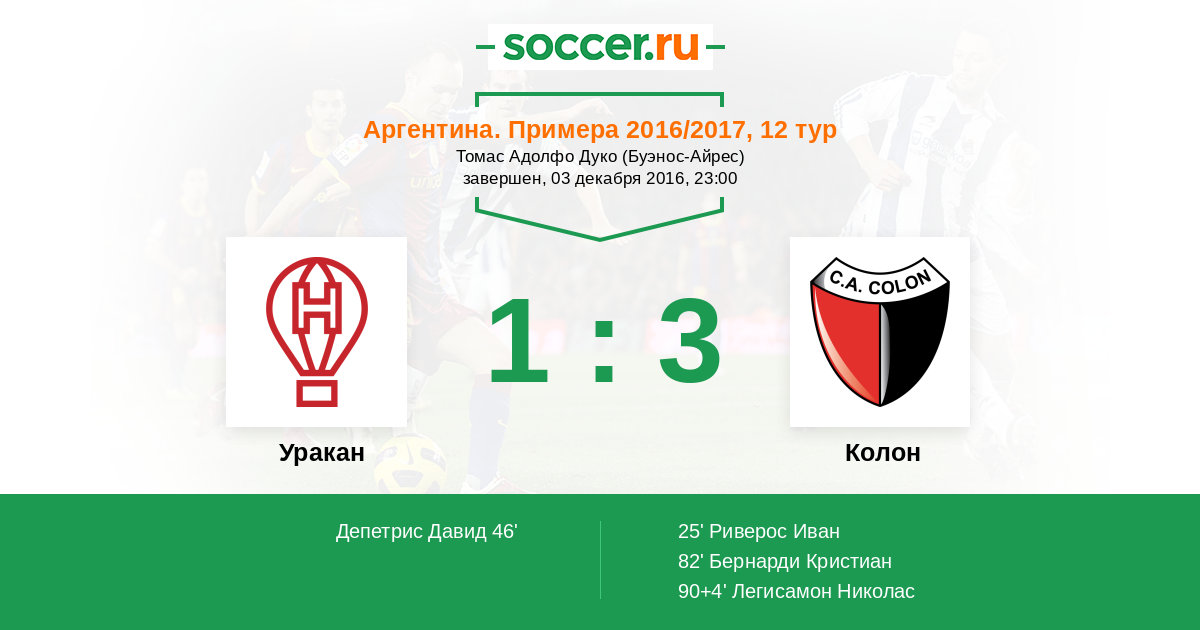 90+4' (1:3) Легисамон Николас (9) (Бланко Исмаэль (19))