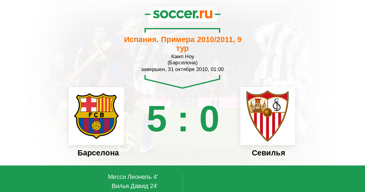 24' (2:0) Вилья Давид (7) (Месси Лионель (10))