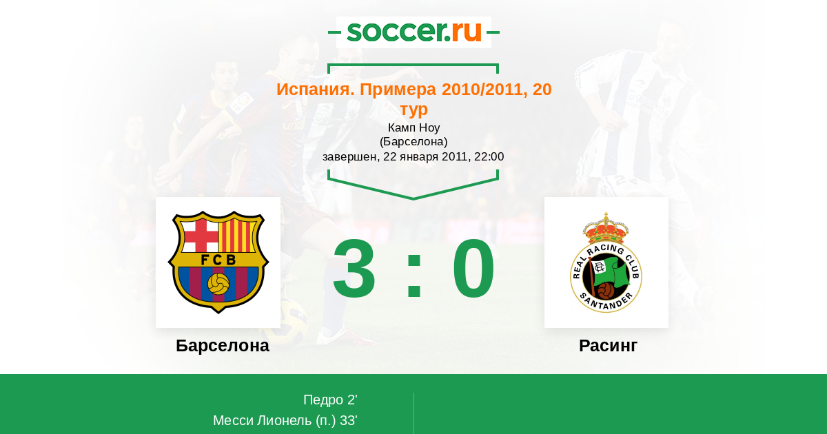 2' (1:0) Педро (17) (Месси Лионель (10))