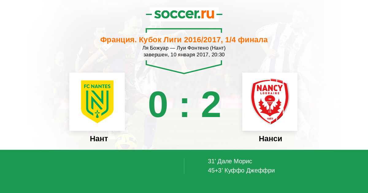 45+3' (0:2) Куффо Джеффри (14) (Пуйо Лоик (19))
