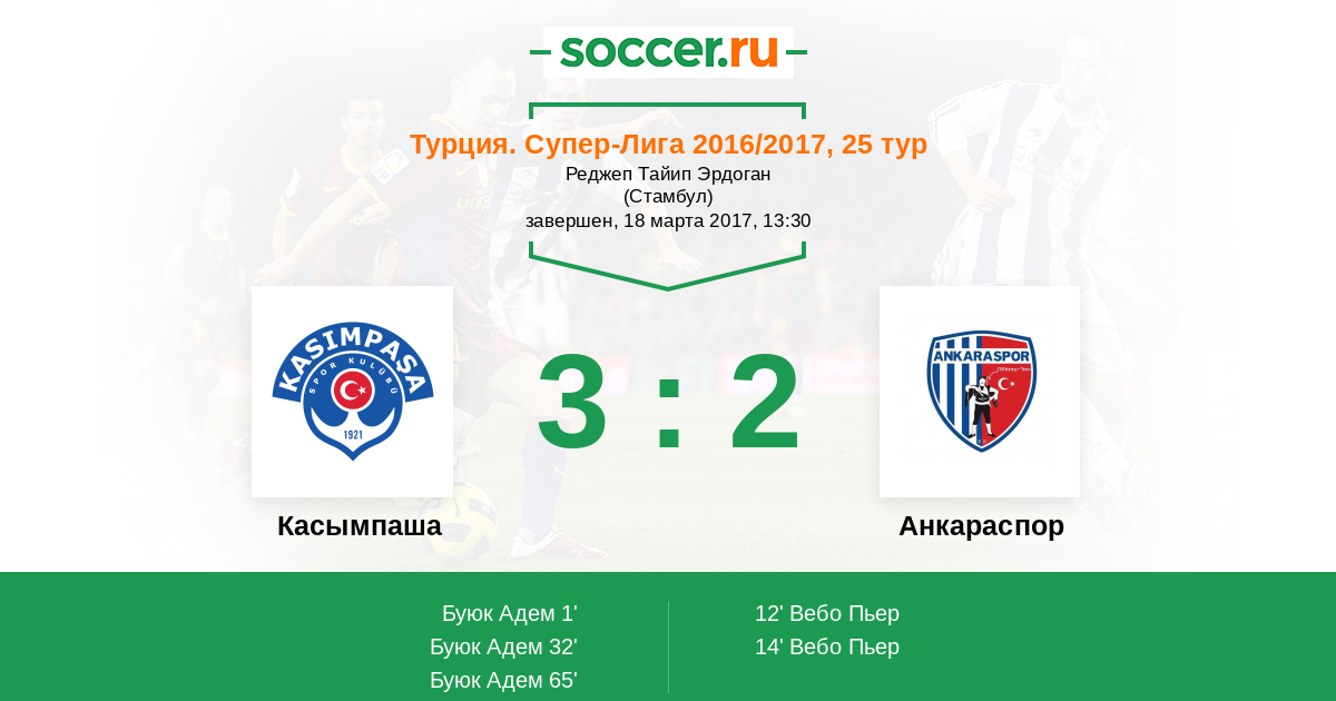 1' (1:0) Буюк Адем (10) (Шахин Тургут Доган (17))
