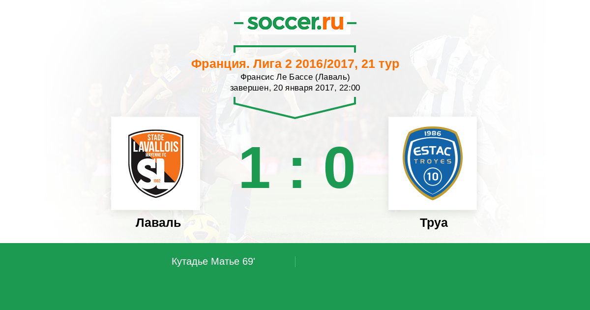 69' (1:0) Кутадье Матье (6)