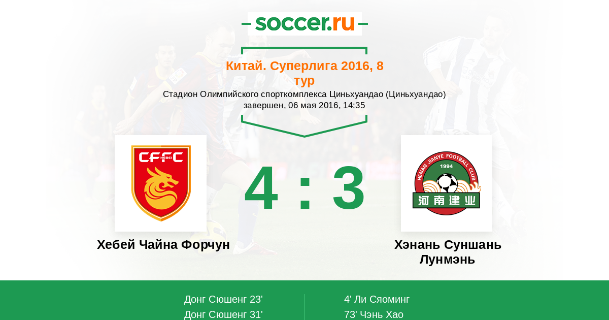 31' (2:1) Донг Сюшенг (9) (Жервиньо (27))