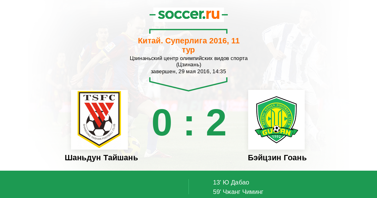13' (0:1) Ю Дабао (19) (Чэндун Чжан (28))