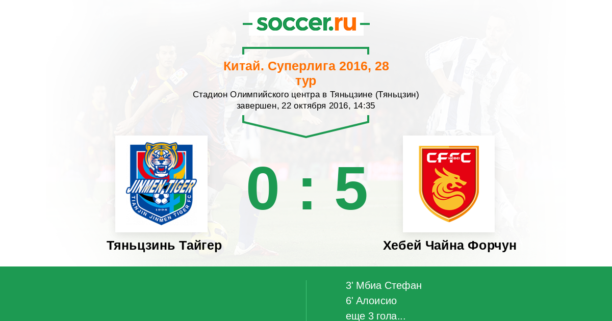 3' (0:1) Мбиа Стефан (25) (Ли Ханг (30))