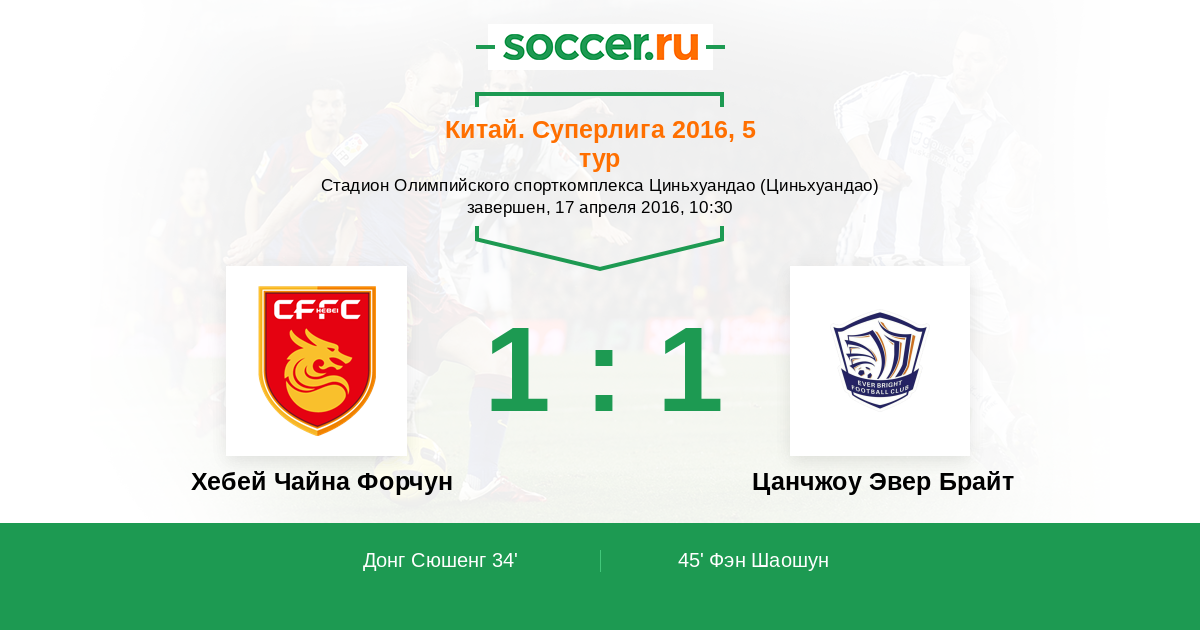 34' (1:0) Донг Сюшенг (9) (Лавесси Эсекьель (10))