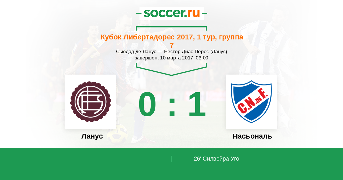 26' (0:1) Силвейра Уго (9) (Гарсия Эспино Альфонсо (22))