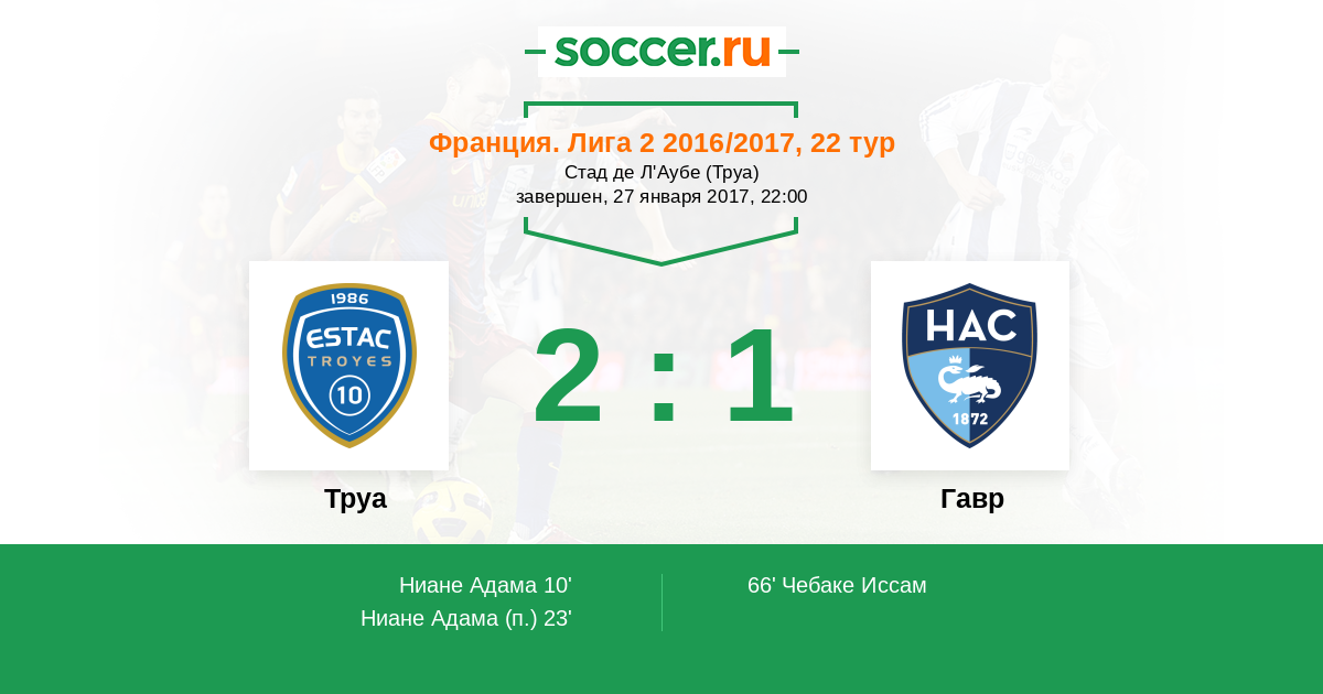 23' (2:0) Ниане Адама (26)