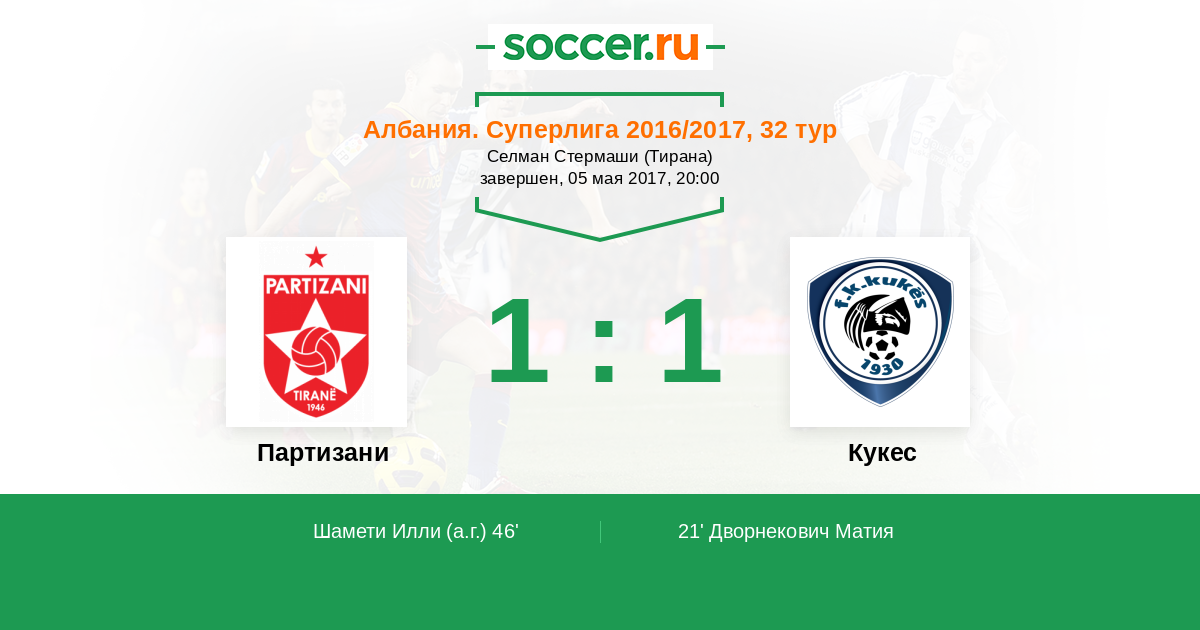 46' (1:1) Автогол Шамети Илли