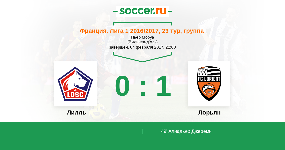 49' (0:1) Алиадьер Джереми (14) (Марво Сильвен (10))