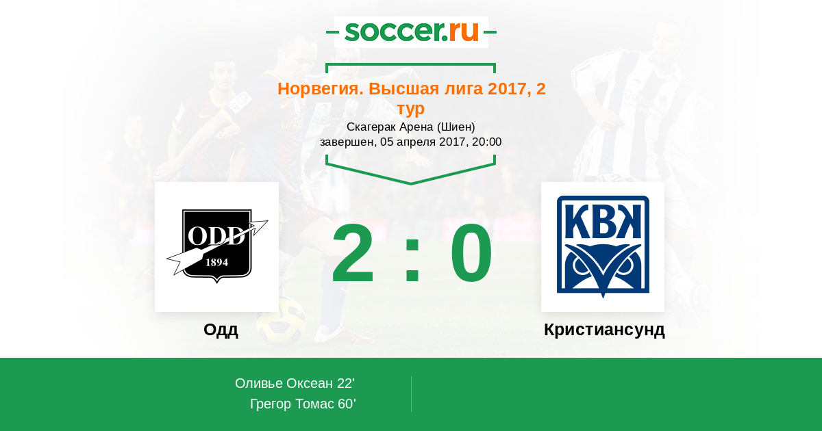 22' (1:0) Оливье Оксеан (10) (Семб Берге Фредрик (16))