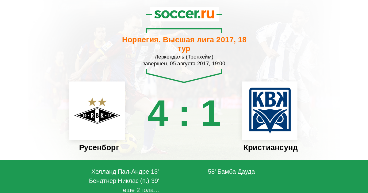 13' (1:0) Хелланд Пал-Андре (23) (Хеденстад Вегар (2))