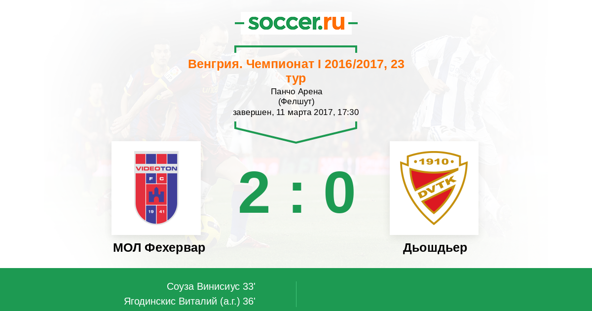 36' (2:0) Автогол Ягодинскис Виталий (2)