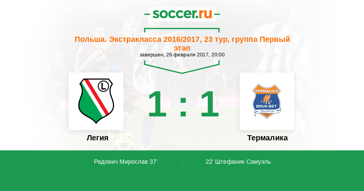 Запасные: 22 Хямяляйнен Каспер (с 63'), 9 Казаишвили Валерий (с 81'), 18 Кухарчик Михал (с 81'), 33 Цежняк Радослав, 3 Йодловиц Томаш, 4 Червински Якуб, 53 Шиманьски Себастьян