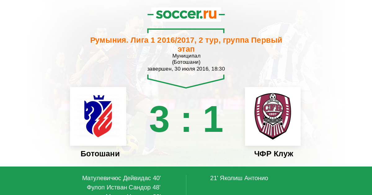 Запасные: 9 Гима (с 46'), 4 Хорж Разван (с 56'), 57 Нувье Брайан (с 57'), 21 Негрут Сергиу, 1 Минца Михай, 16 Верес Силард, 77 Петелеу Андрей