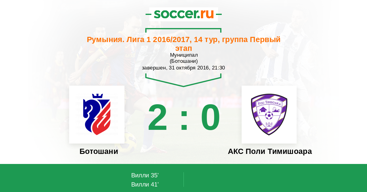 35' (1:0) Вилли (23)