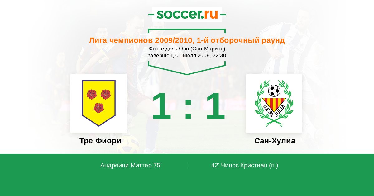 75' (1:1) Андреини Маттео