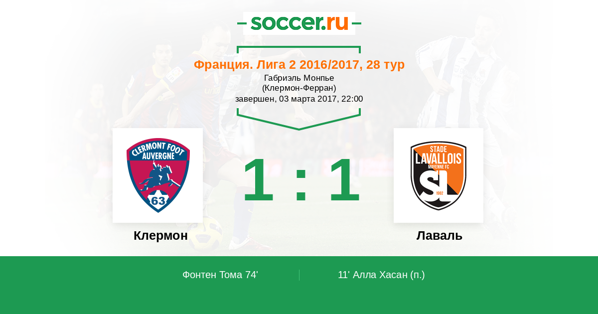 74' (1:1) Фонтен Тома (5) (Дюгимон Реми (21))