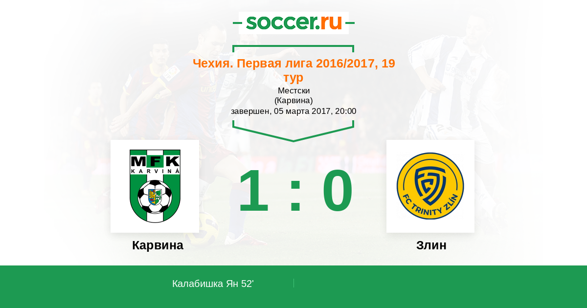 52' (1:0) Калабишка Ян (9)