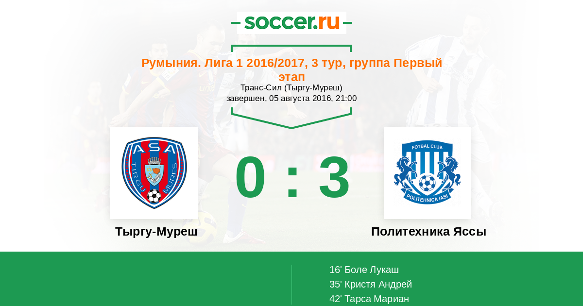Запасные: 5 Букур Себастьян (с 46'), 78 Катона Арнольд (с 46'), 70 Петра Василе Михай (с 85'), 94 Урсу Октавиан Андрей, 12 Викиу Адриан, 3 Жаж Тамаш, 2 Чертеш Карлос