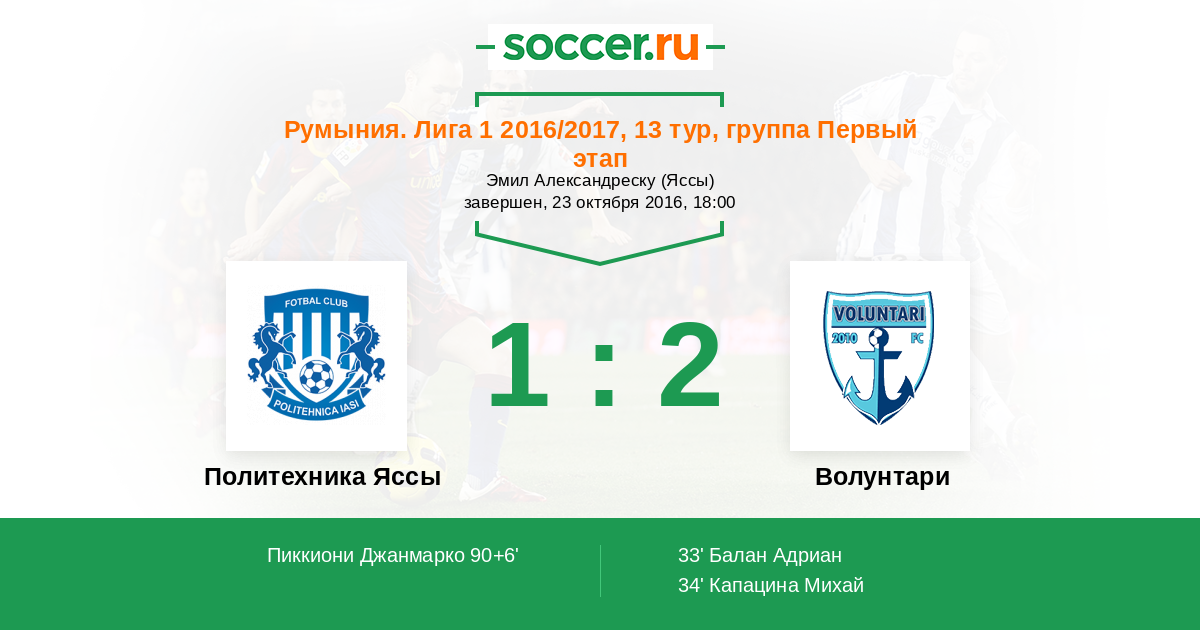 33' (0:1) Балан Адриан (90)