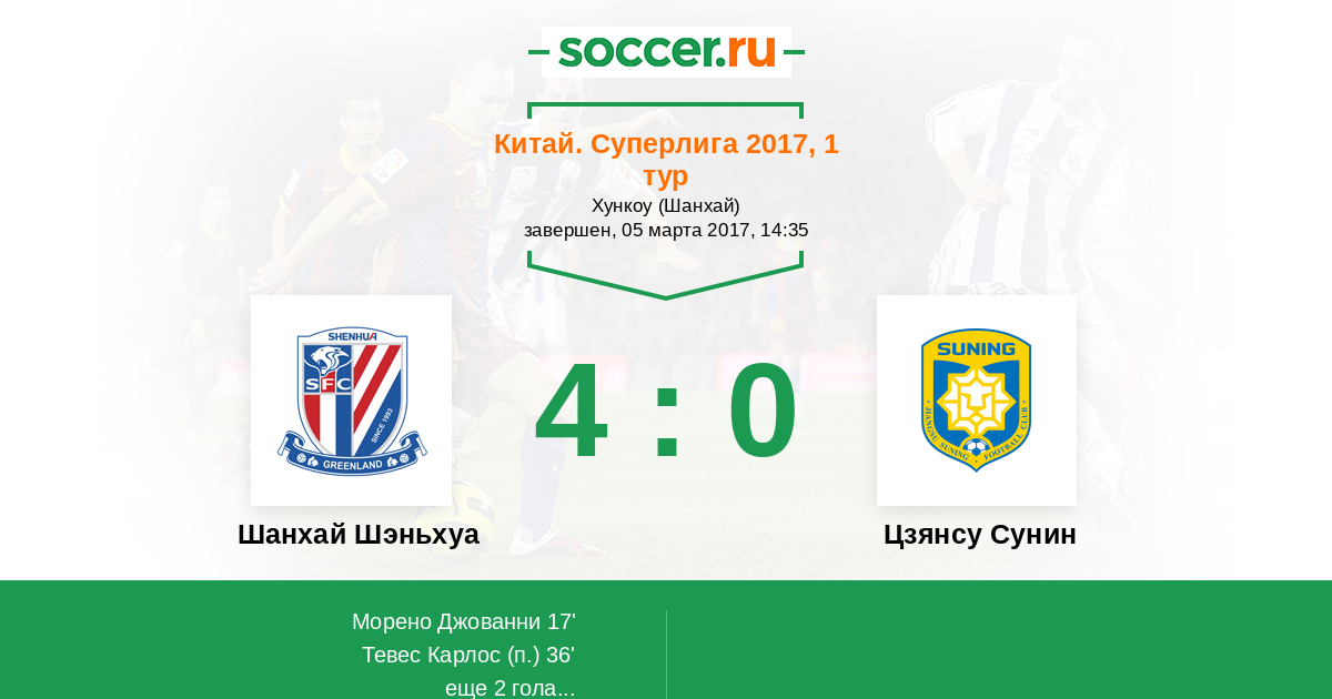 17' (1:0) Морено Джованни (10) (Тевес Карлос (32))